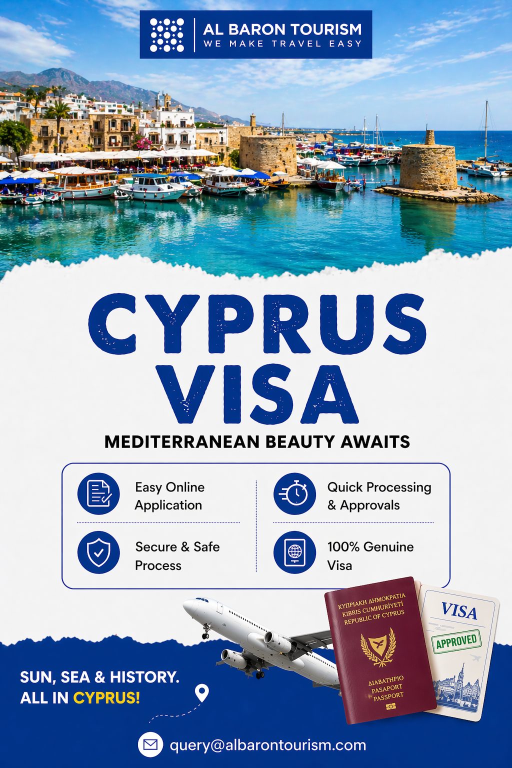Note: If you hold a valid multiple-entry Schengen visa, you may be eligible for visa-free entry to Cyprus. Check your eligibility with Al Baron Tourism.